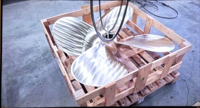 重型機構件的包裝工法 tonypack 的綠色包裝分享:對於重要機構件的包裝,如案例所示為船舶的重要傳動葉片,其材質通常以耐腐蝕、好維護的銅合金為主,但在運輸過程中仍需特別留意可能遭受的意外碰撞。由於重量超過百公斤,葉片本體四周皆屬關鍵部位,不宜有任何接觸點,因此僅能於中心點進行固定與承托。於是選擇實木材質製作結構,並以軸心加固的方式鎖緊固定,避免運輸途中晃動而產生嗑碰或損傷。此外,在底部加襯一層木棧板,除了方便搬運與堆疊,也能降低人為移動時造成的風險。若為外銷至產地以外的國家,需特別注意木材必須經過防疫熱處理,外觀亦會再加覆保護用紙箱或塑料膜層,以符合國際檢疫規範。這個案例可以看見包裝技術的專業度:在確保高價值零組件安全的前提下,材料使用恰到好處、不浪費一絲一毫,這正是「真正的綠色包裝」的核心精神。#包裝決策#ESG包裝#外銷包裝